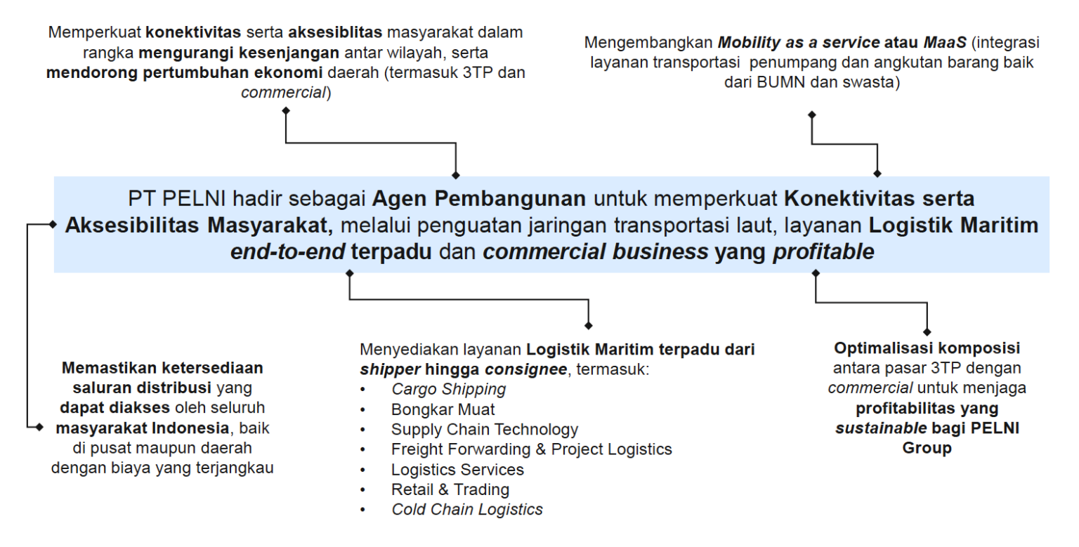 PT PELNI (Persero) sebagai perusahaan BUMN (Badan Usaha Milik Negara) yang bergerak dibidang pelayaran hadir sebagai Agen Pembangunan untuk memperkuat konektivitas serta aksesibilitas masyarakat, dalam rangka mengurangi kesenjangan antar wilayah dan mendorong pertumbuhan ekonomi di daerah, khususnya daerah 3TP.