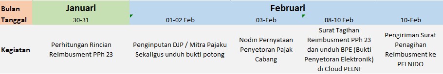 • Akhir bulan Januari melakukan kalkulasi dan pembuatan rincian reimbusment pph 23