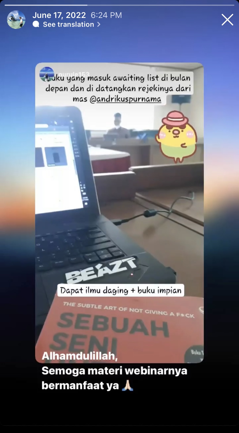 Tentunya saya membuat materi ini bukan hanya dari menyadur atau membaca hal-hal teori saja. Teknik yang ada di materi ini sudah saya praktikan, saya pakai, dan saya buktikan sendiri. Nah sayangnya, pada saat webinar offline di ruang rapat lantai 9 saat itu, tidak ada yang merekam. Jadinya ga bisa share video webinarnya deh. Tapi jangan khawatir, di artikel ini akan saya share materi presentasi webinarnya. Teman-teman bisa langsung cek materinya di bawah ini ya :