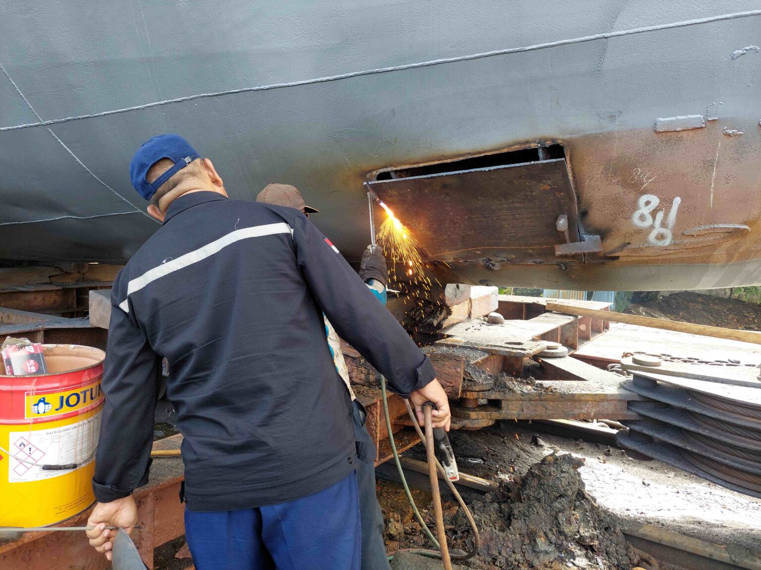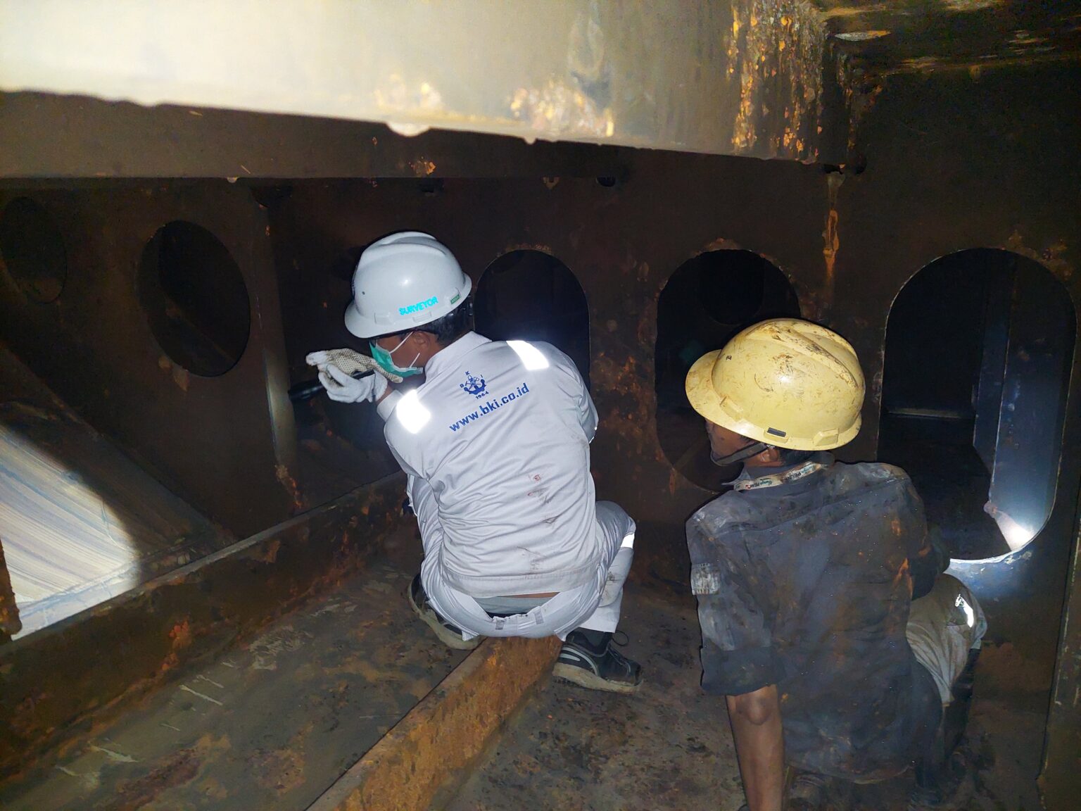 Gambar 3. Pemeriksaan kondisi konstruksi kapal di dalam tangki