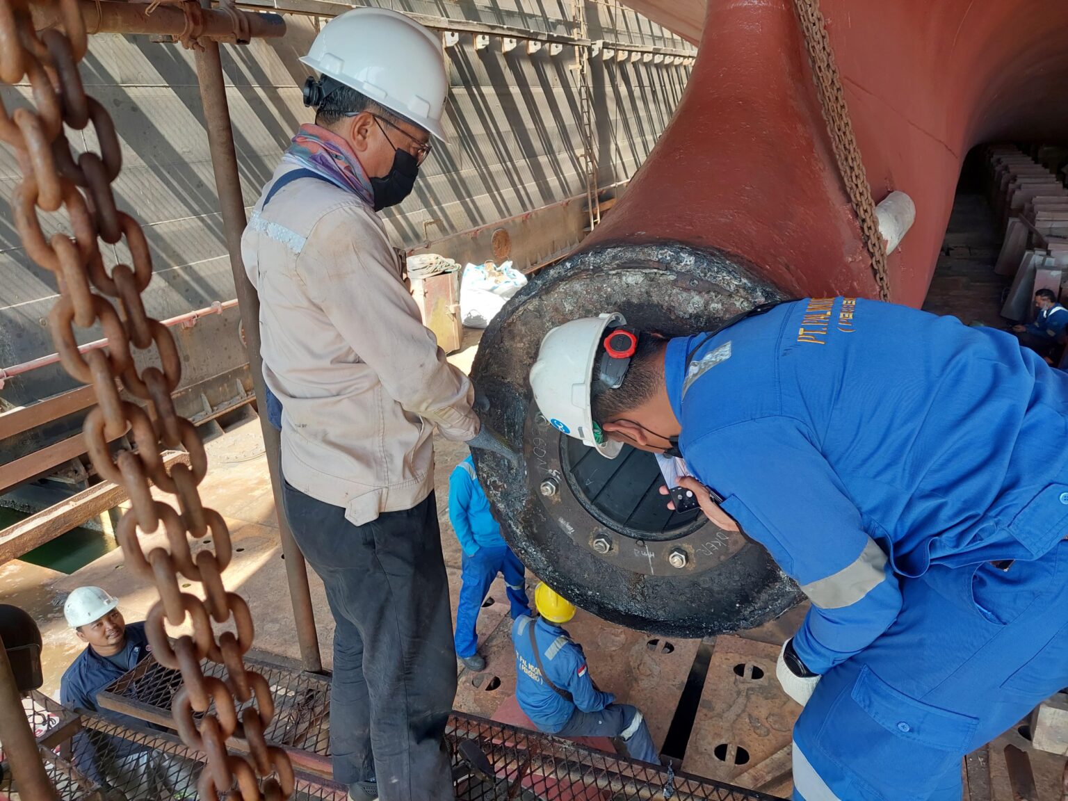 Gambar 2. Pengecekan kondisi lorong poros baling-baling