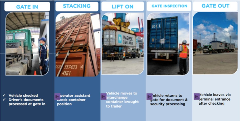 - Gate In: Kendaraan masuk terminal dan dokumen diperiksa.