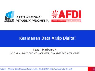 Materi Training MATERI KEAMANAN DATA ARSIP DIGITAL Pelatihan Digital Archives Transformation Week : We Have The Future Yang telah dilaksanakan 17-18 november ...