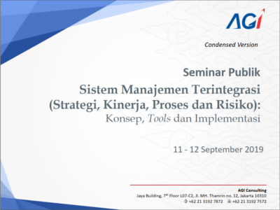 Materi Training Sistem Manajemen Terintegrasi Berikut adalah materi Sistem Manajemen Terintegrasi (Strategi, Kinerja, Proses dan Risiko) Konsep, Tools dan Implementasiyang ...